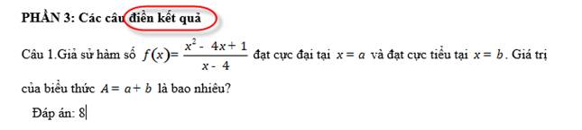 Loại câu hỏi trả lời ngắn, điền đáp án - Có một trong các cụm từ: điền kết quả, hoặc trả lời ngắn - Hoặc có <g1> Đáp án câu trả lời ngắn đặt sau chữ: “Đáp án:” |